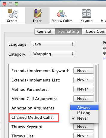 I always missed a way to format Fluent API code blocks in Netbeans properly.